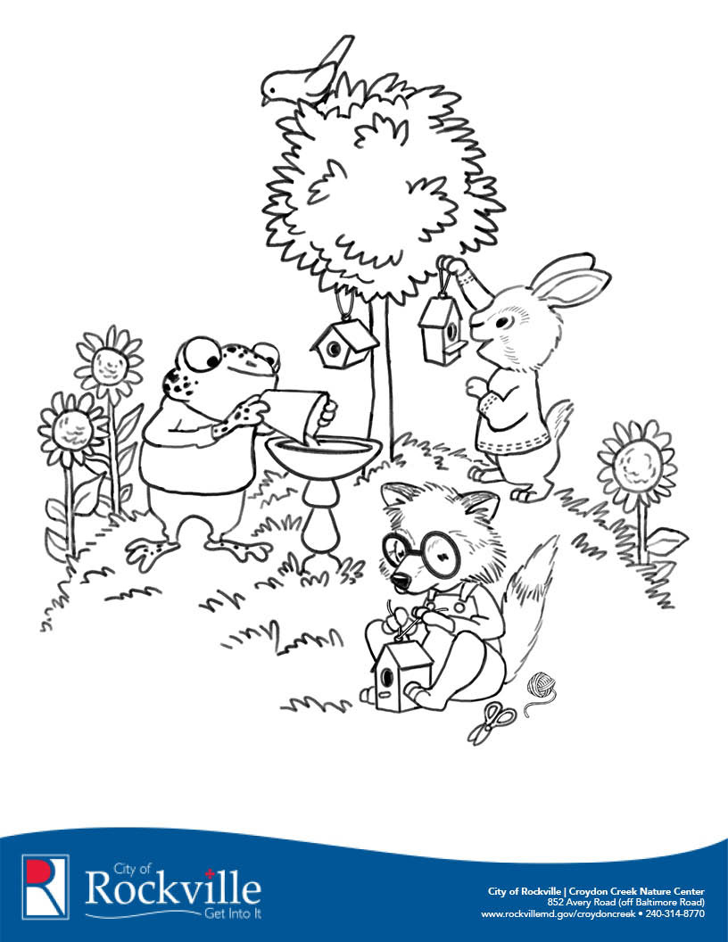 Coloring sheet for Croydon Creek Nature Center's in-person and online Earth Day coloring competition based on the theme "Invest in Our Planet."